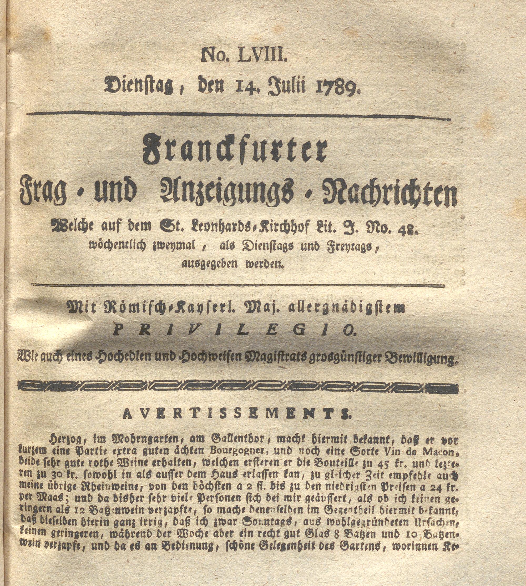 Franckfurter Frag- und Anzeige-Nachricht...
