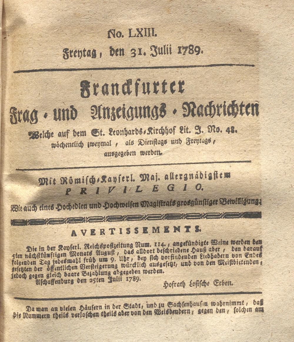 Franckfurter Frag- und Anzeige-Nachricht...