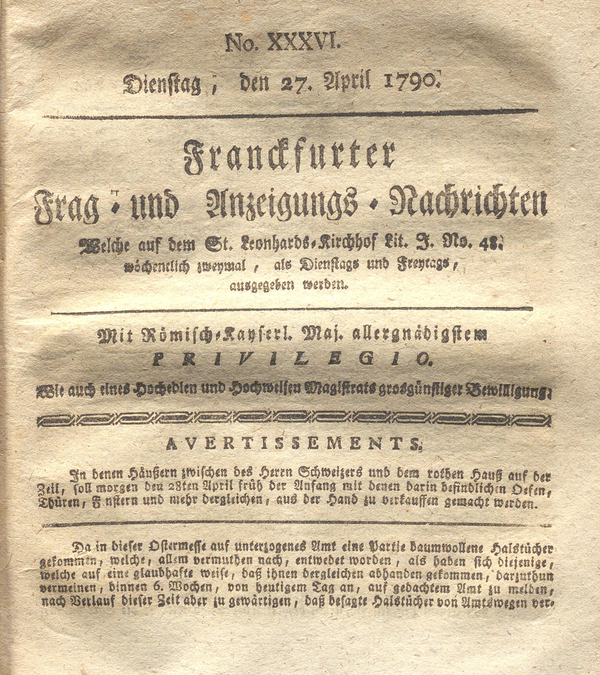 Franckfurter Frag- und Anzeige-Nachricht...