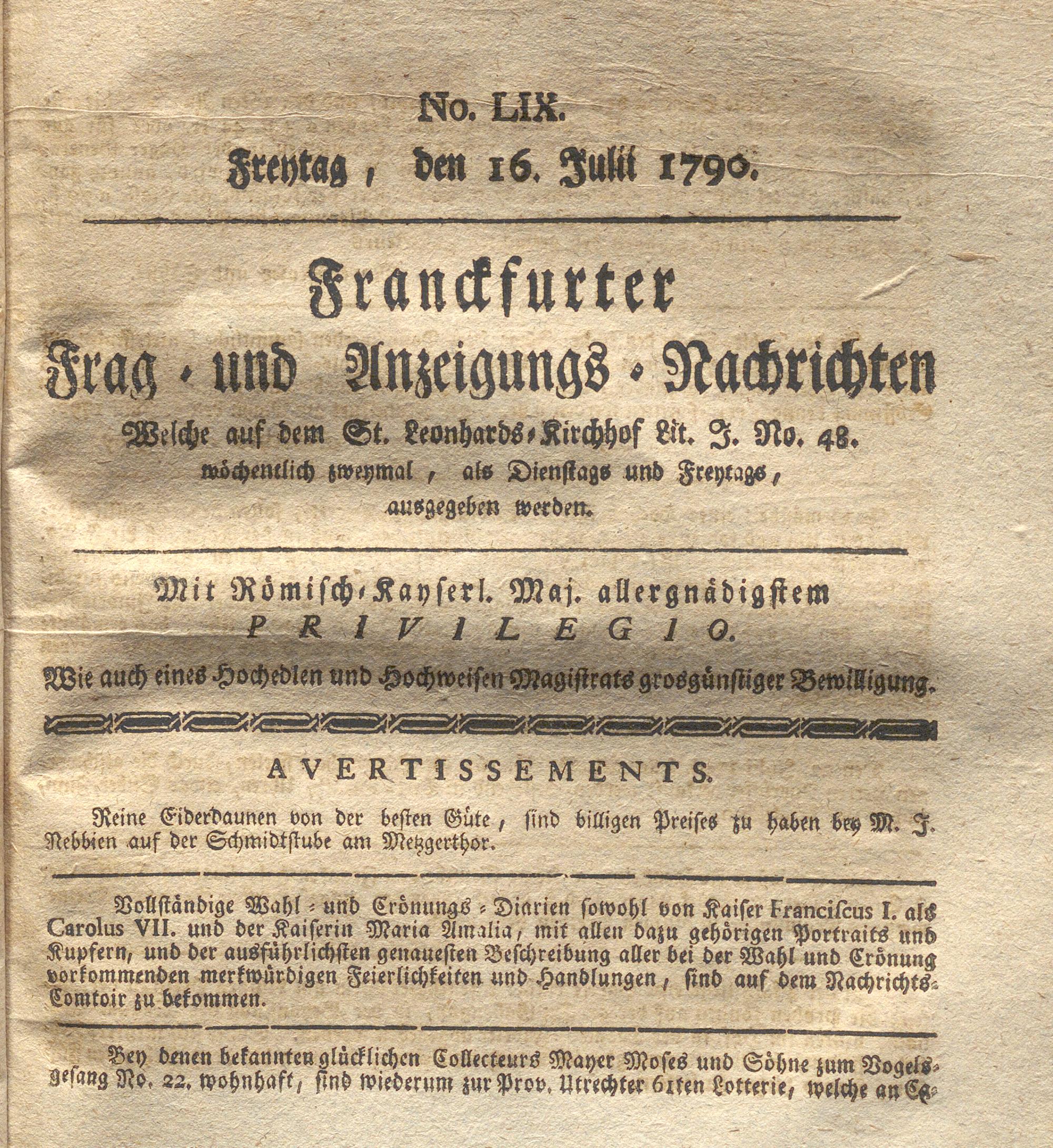 Franckfurter Frag- und Anzeige-Nachricht...