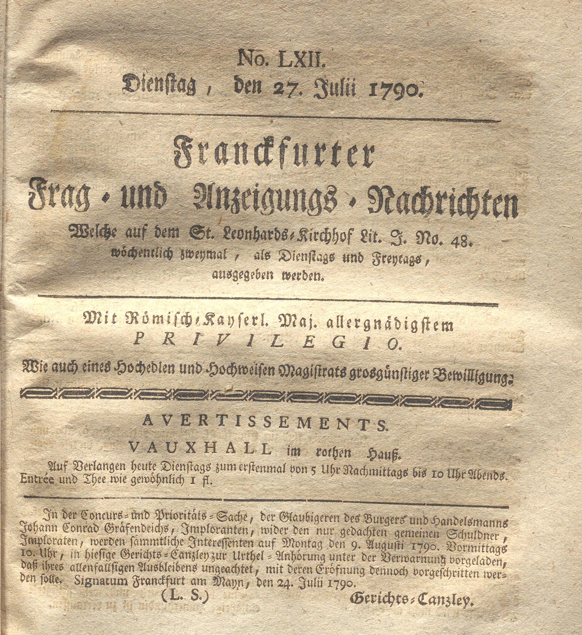 Franckfurter Frag- und Anzeige-Nachricht...