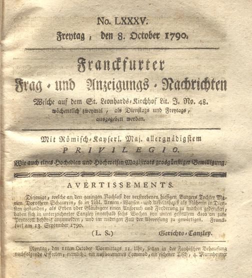 Franckfurter Frag- und Anzeige-Nachricht...