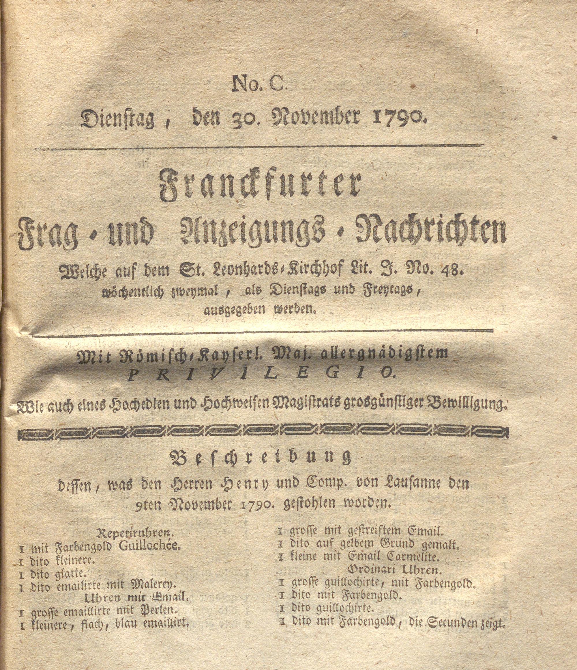 Franckfurter Frag- und Anzeige-Nachricht...