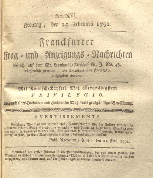 Franckfurter Frag- und Anzeige-Nachricht...