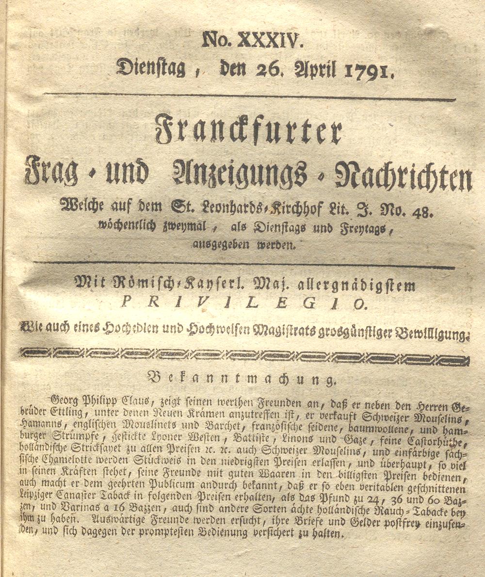 Franckfurter Frag- und Anzeige-Nachricht...