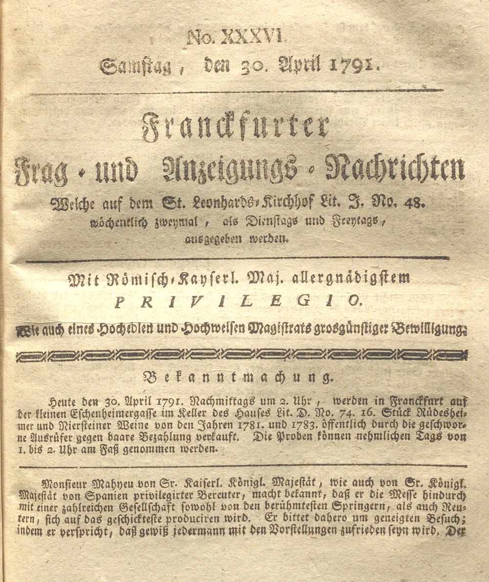 Franckfurter Frag- und Anzeige-Nachricht...