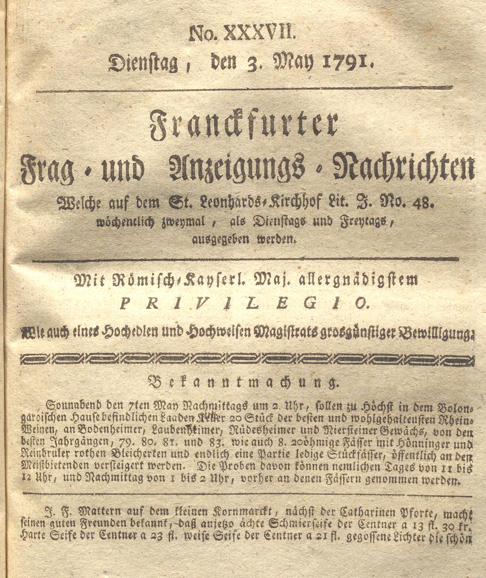 Franckfurter Frag- und Anzeige-Nachricht...