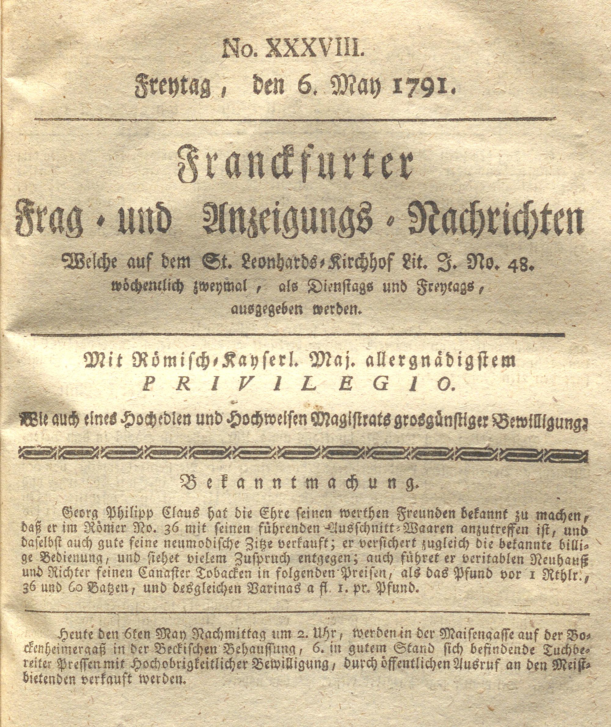 Franckfurter Frag- und Anzeige-Nachricht...