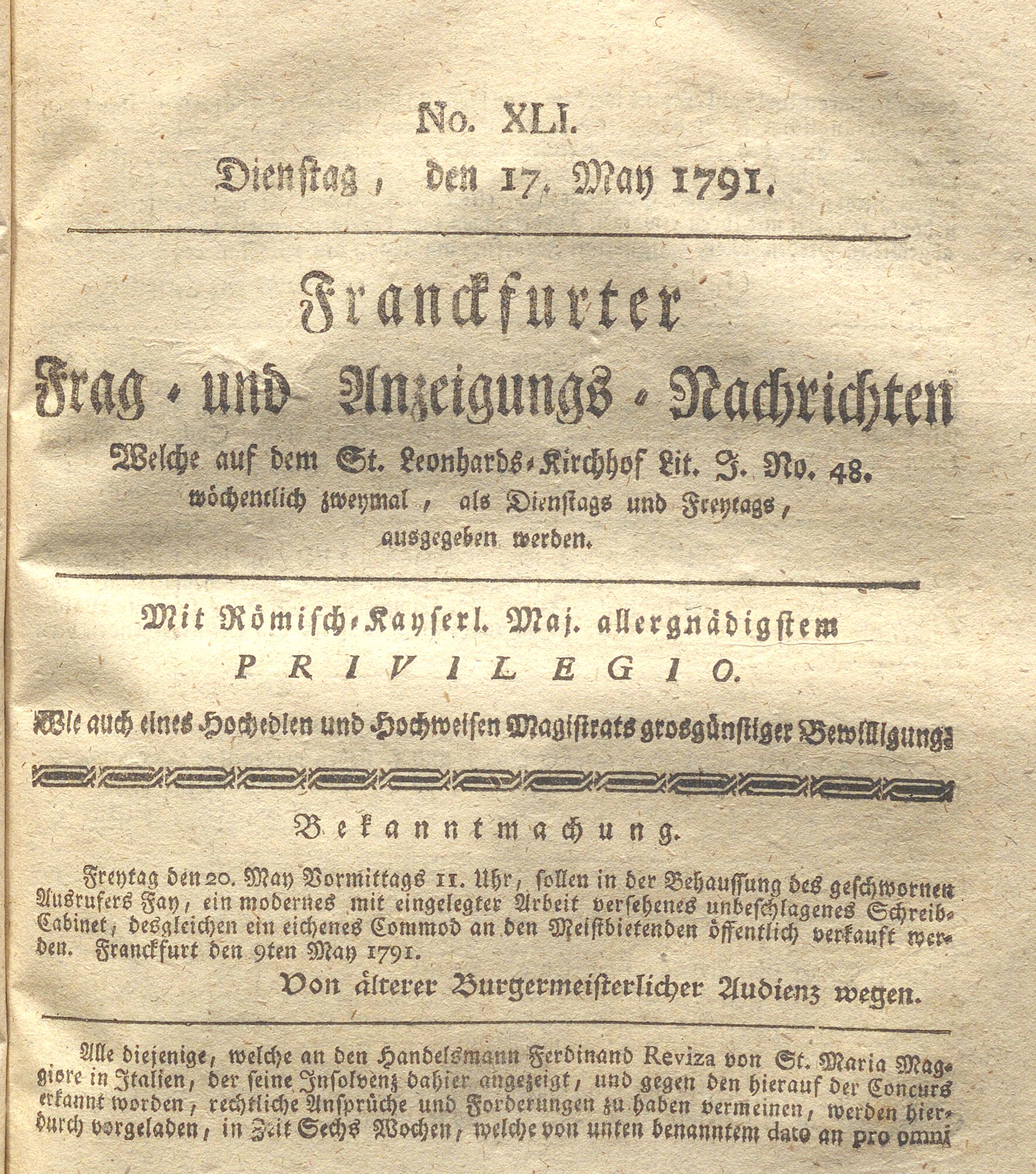 Franckfurter Frag- und Anzeige-Nachricht...