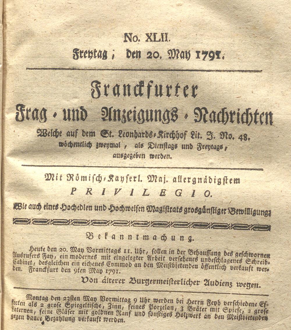 Franckfurter Frag- und Anzeige-Nachricht...