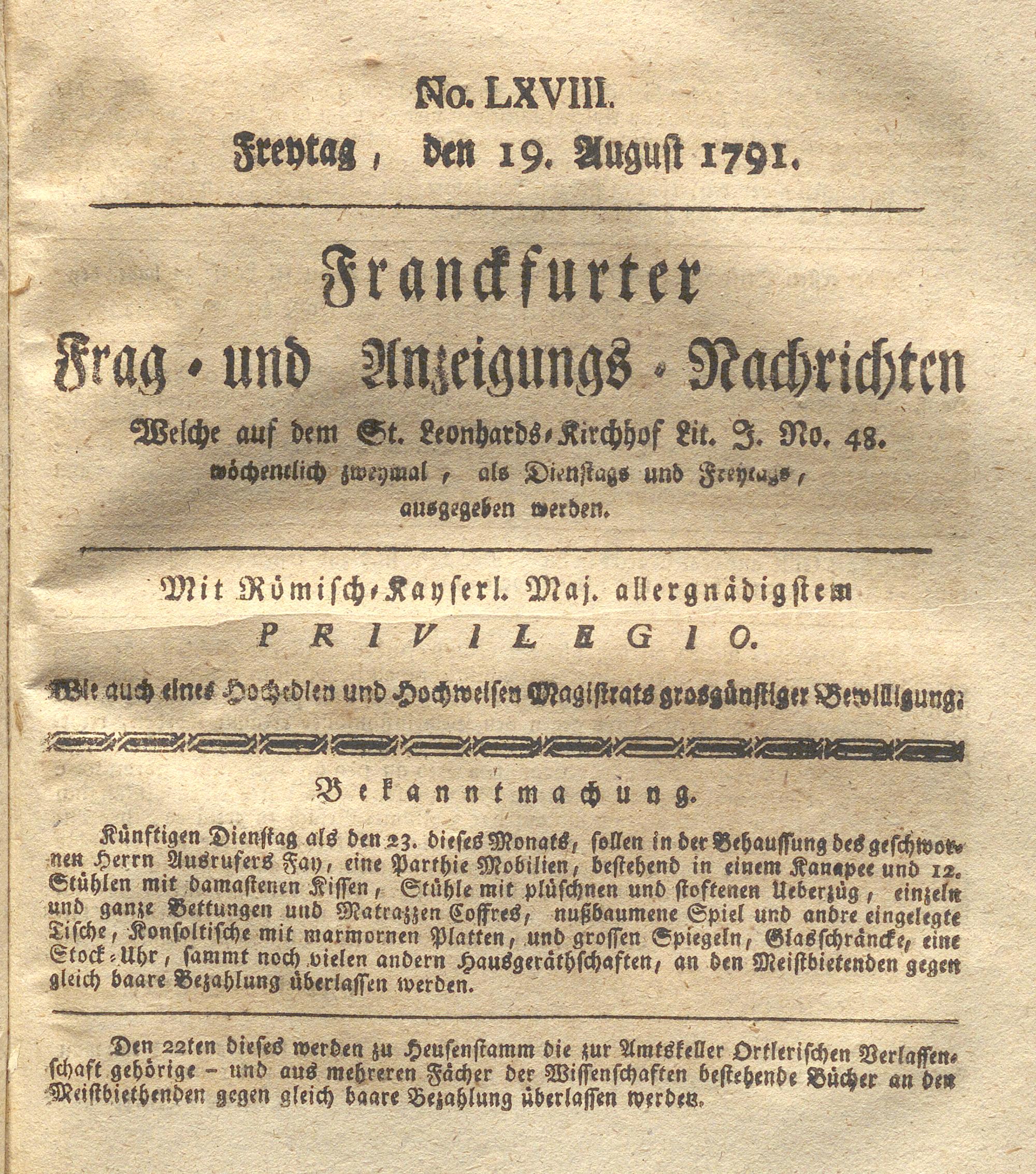 Franckfurter Frag- und Anzeige-Nachricht...
