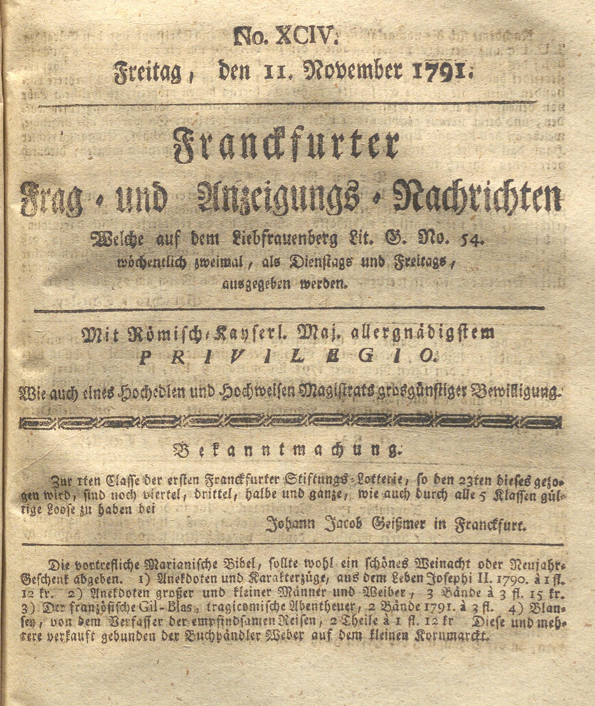 Franckfurter Frag- und Anzeige-Nachricht...