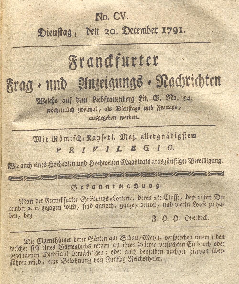 Franckfurter Frag- und Anzeige-Nachricht...