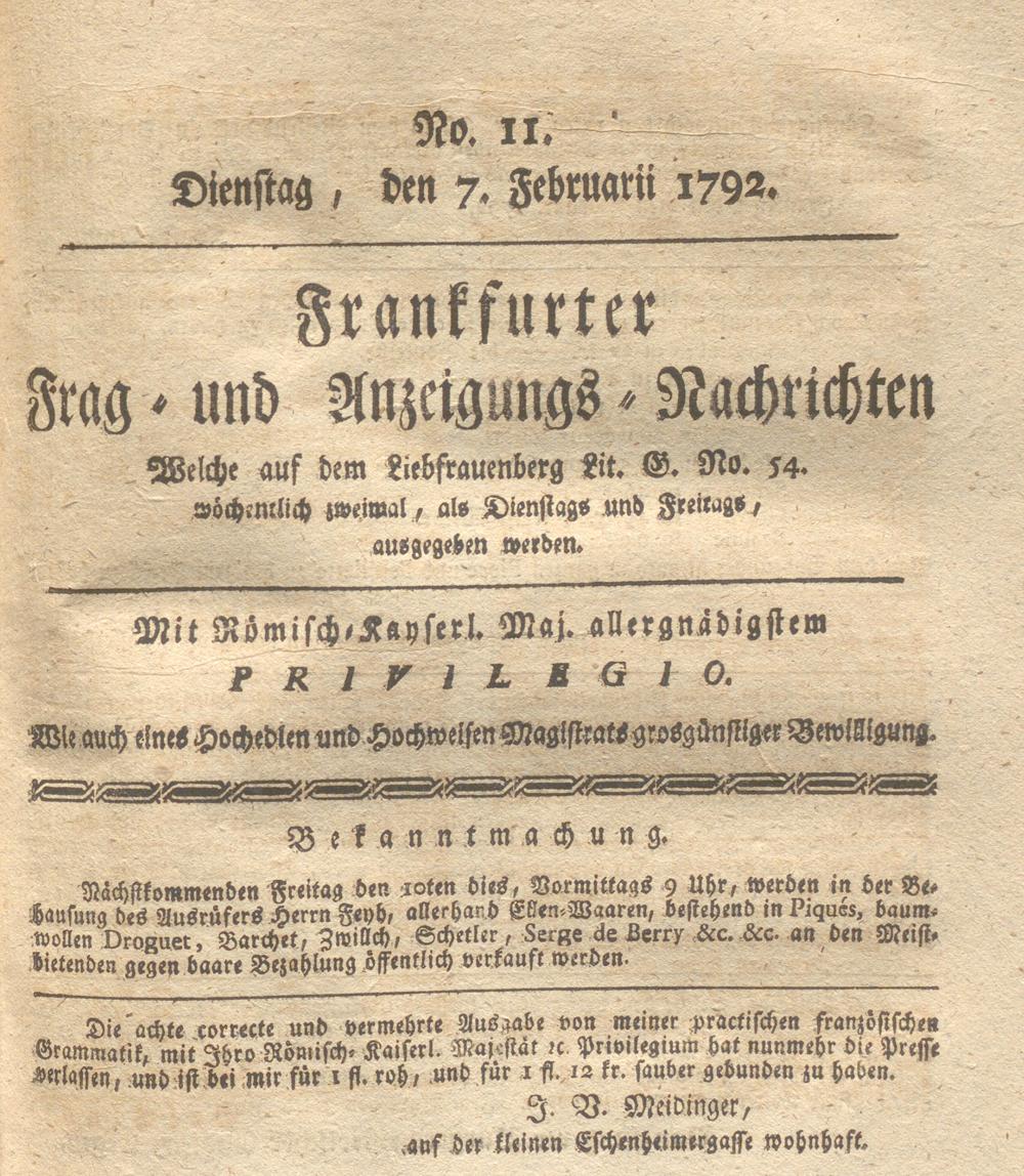 Franckfurter Frag- und Anzeige-Nachricht...