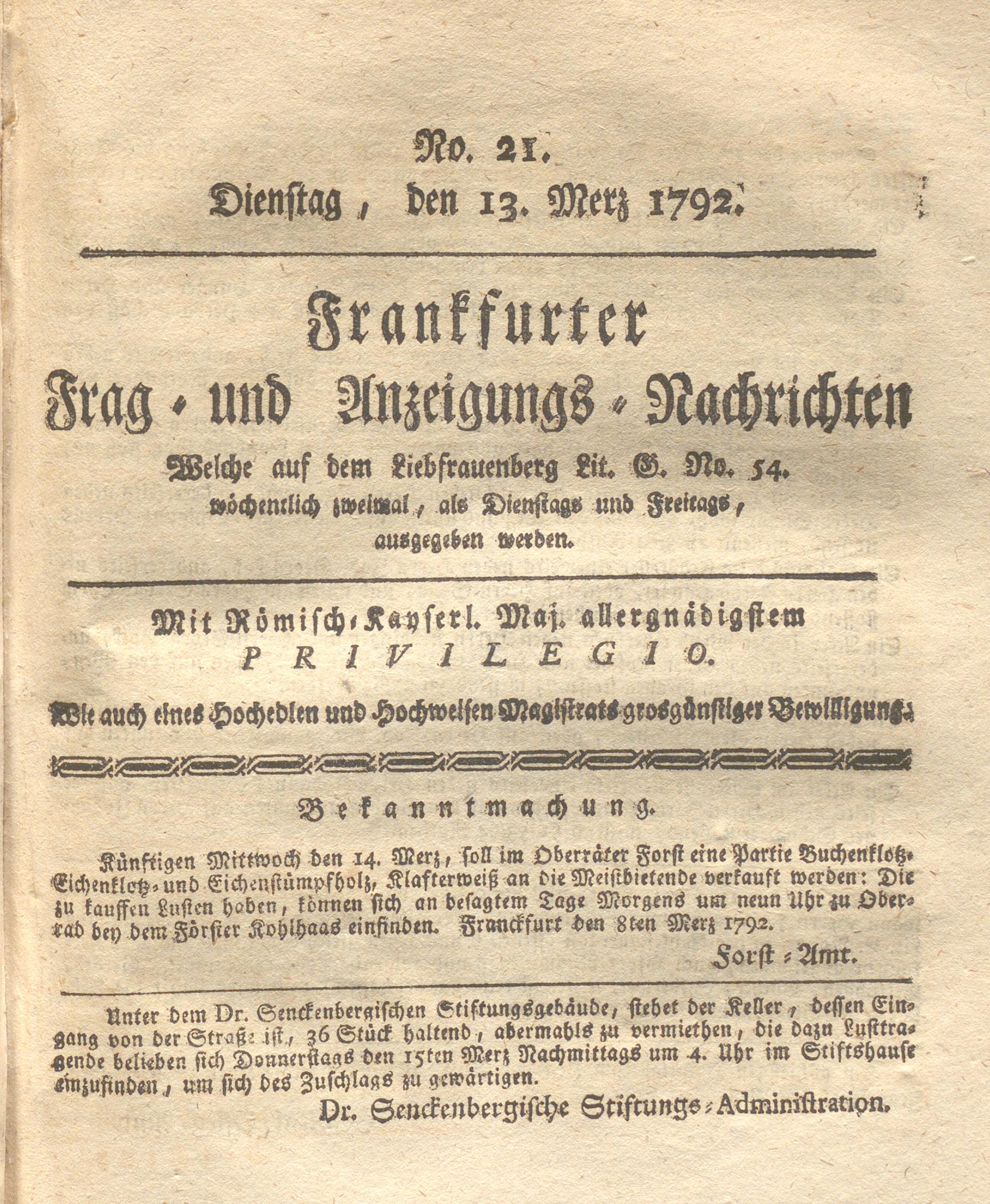 Franckfurter Frag- und Anzeige-Nachricht...