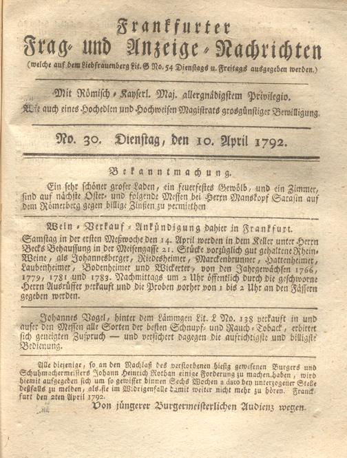 Franckfurter Frag- und Anzeige-Nachricht...