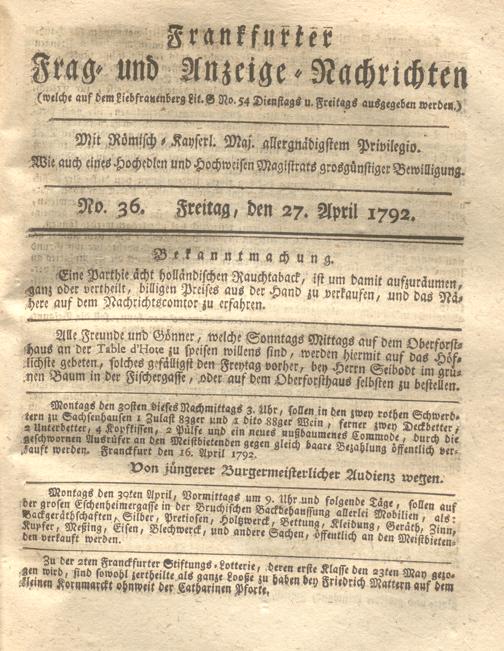 Franckfurter Frag- und Anzeige-Nachricht...