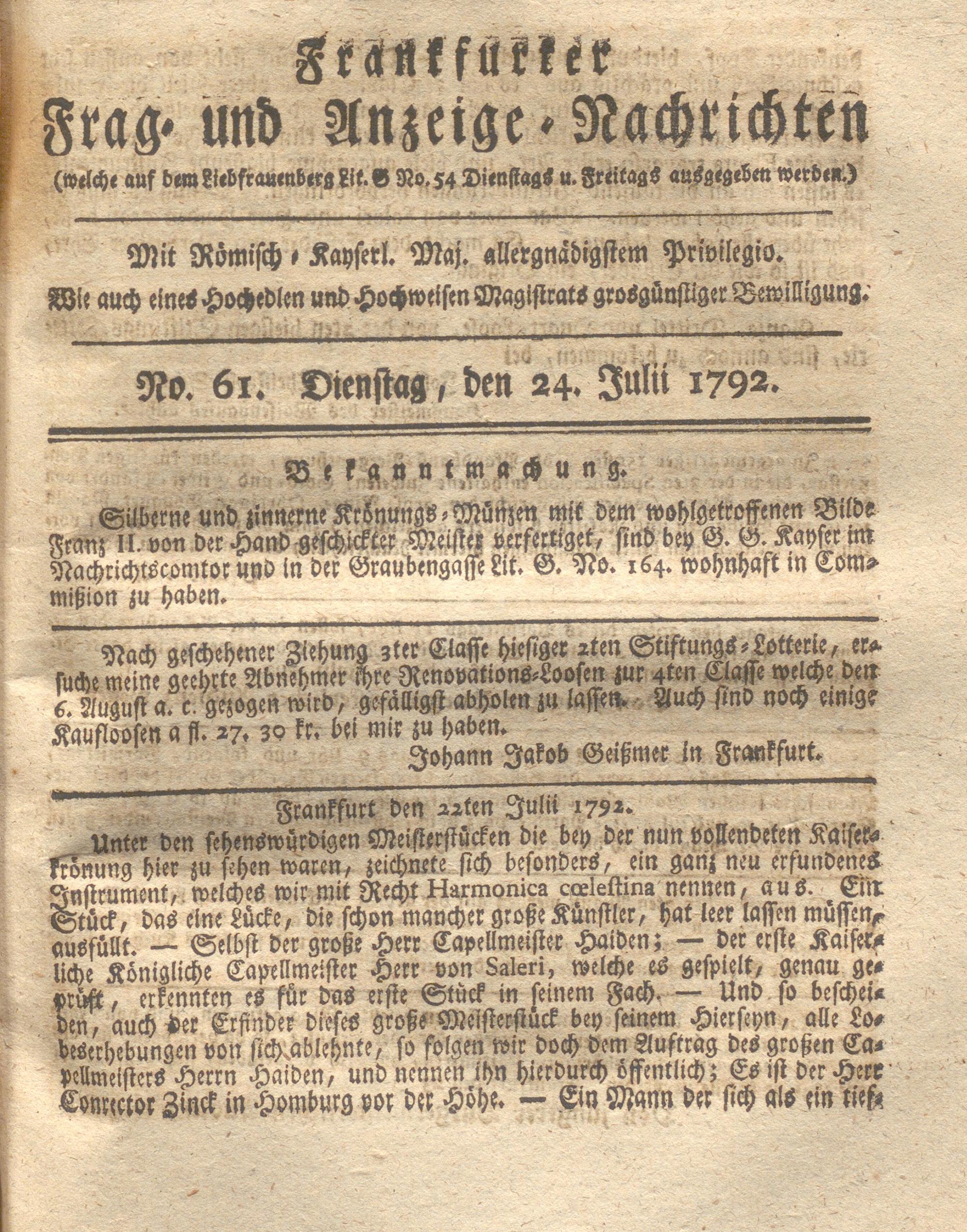 Franckfurter Frag- und Anzeige-Nachricht...
