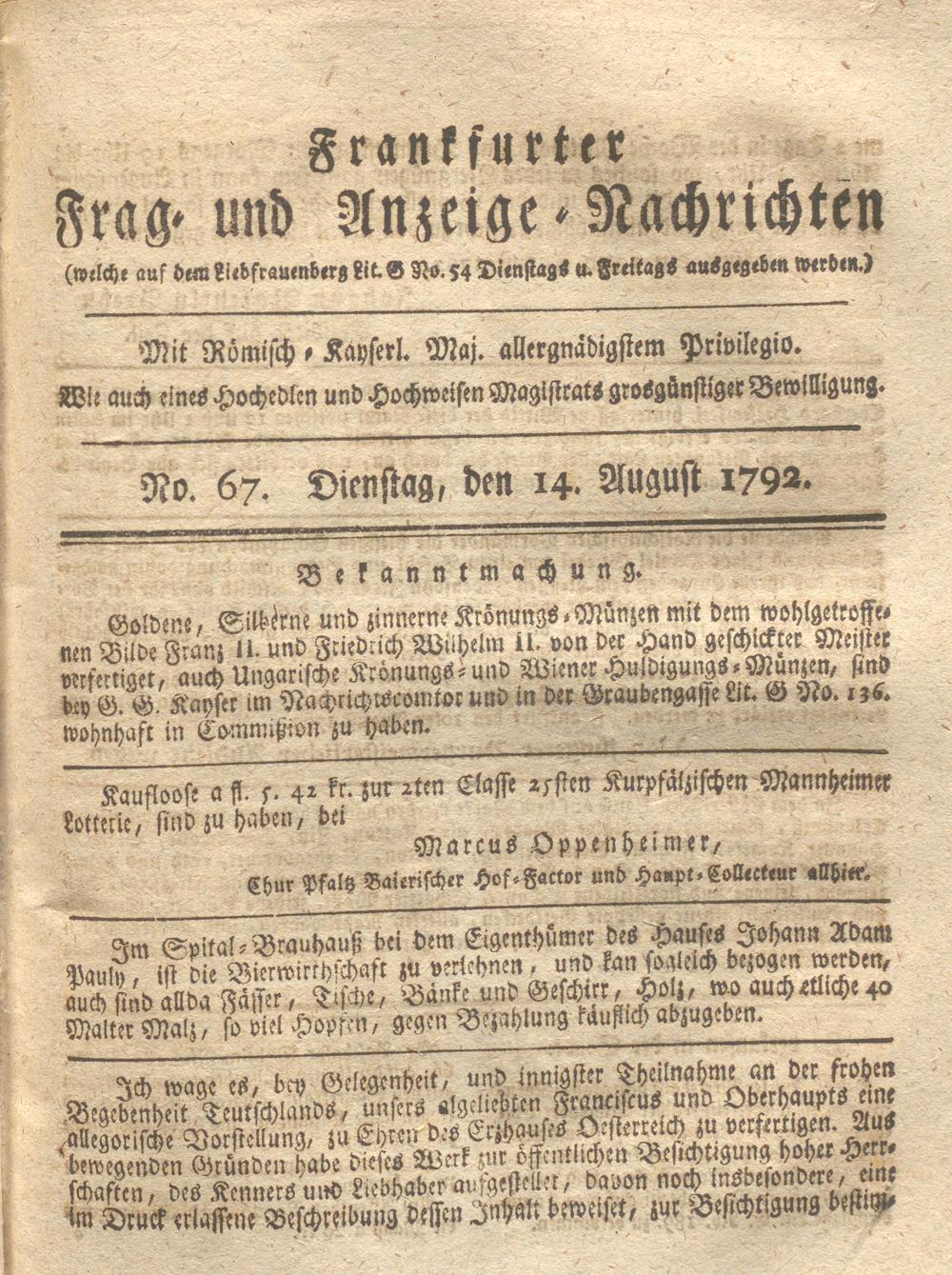 Franckfurter Frag- und Anzeige-Nachricht...