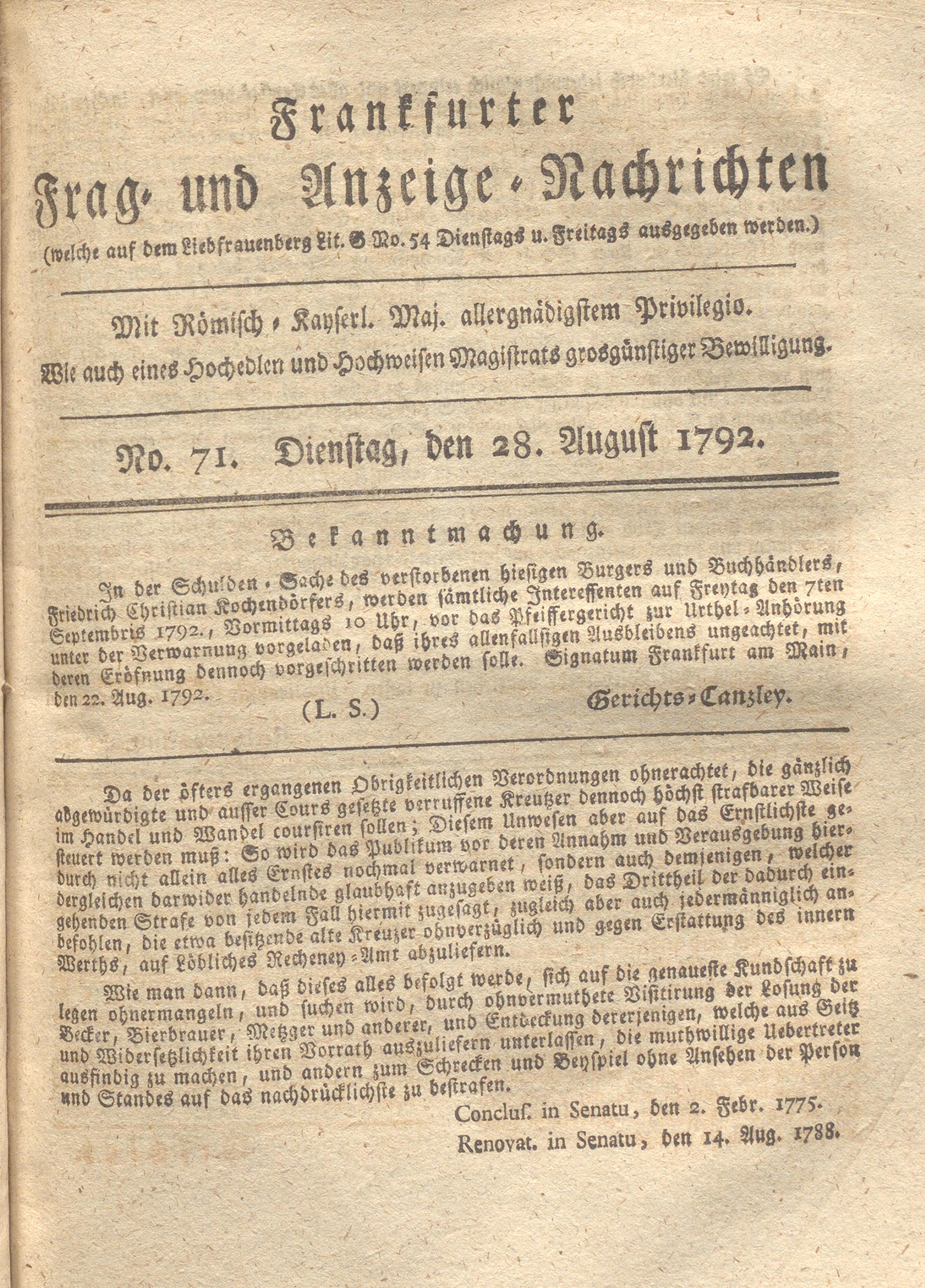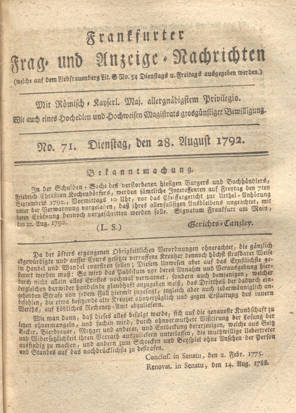 Franckfurter Frag- und Anzeige-Nachricht...