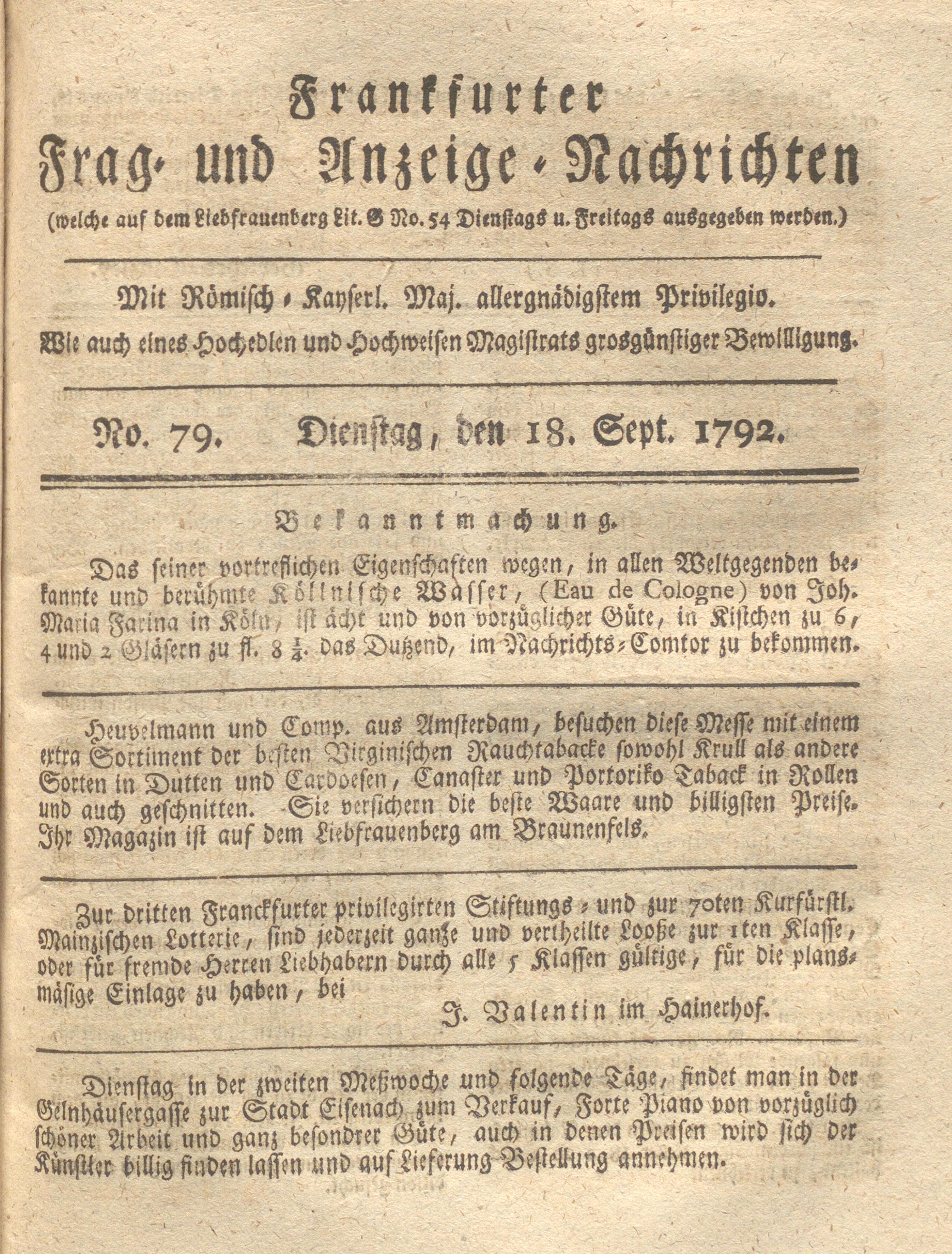 Franckfurter Frag- und Anzeige-Nachricht...