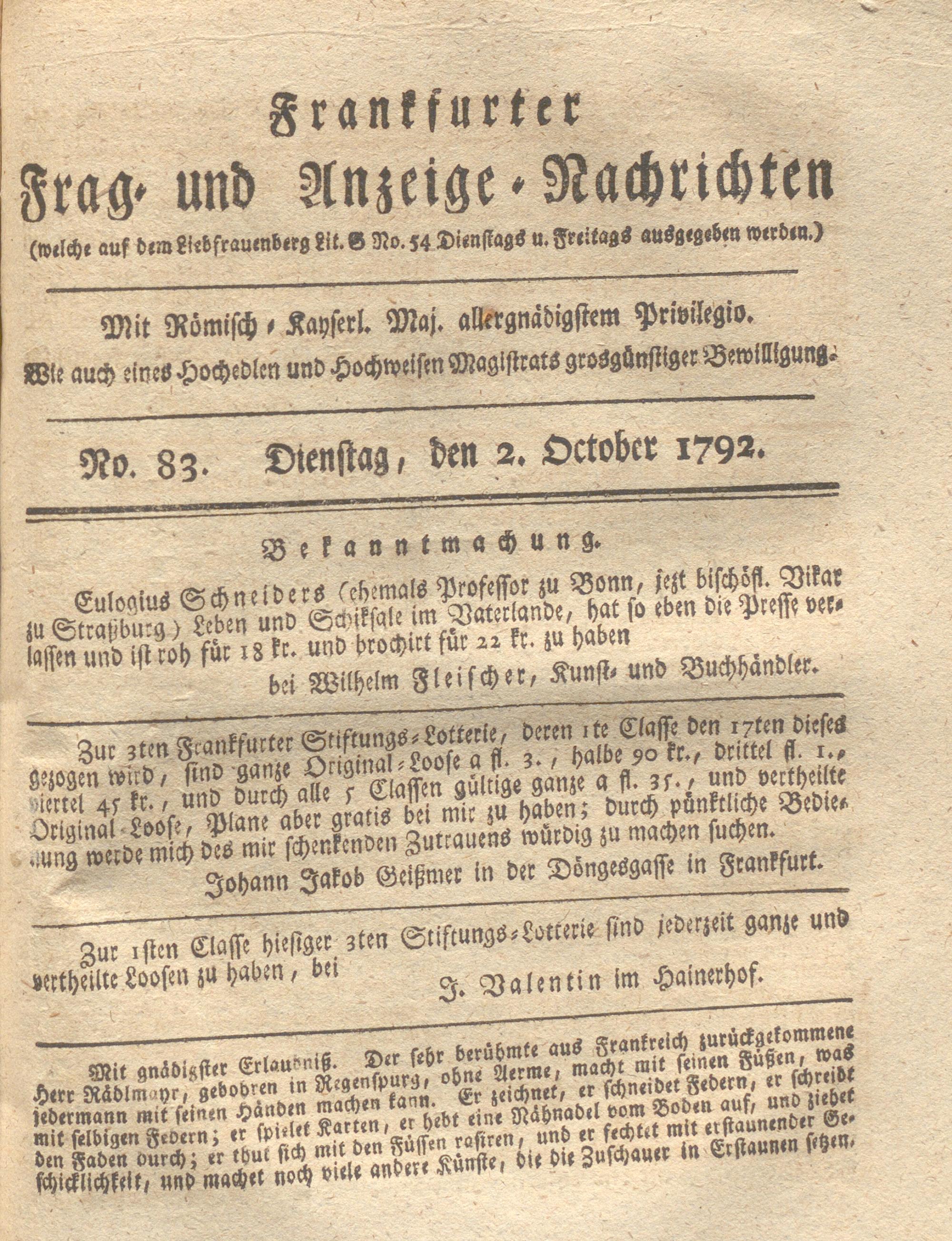 Franckfurter Frag- und Anzeige-Nachricht...