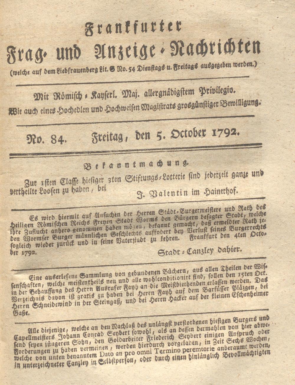 Franckfurter Frag- und Anzeige-Nachricht...