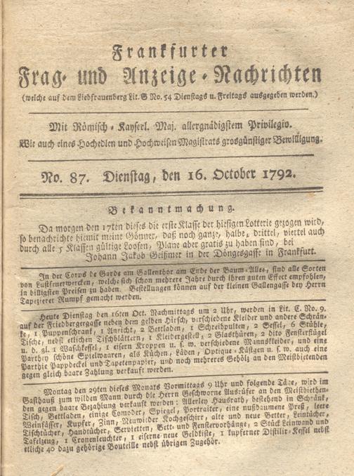 Franckfurter Frag- und Anzeige-Nachricht...