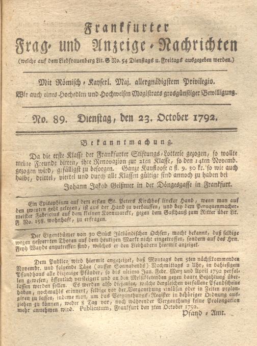 Franckfurter Frag- und Anzeige-Nachricht...