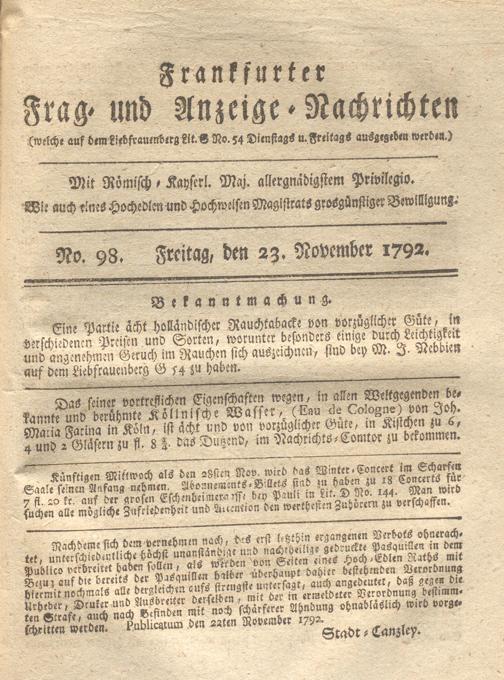 Franckfurter Frag- und Anzeige-Nachricht...