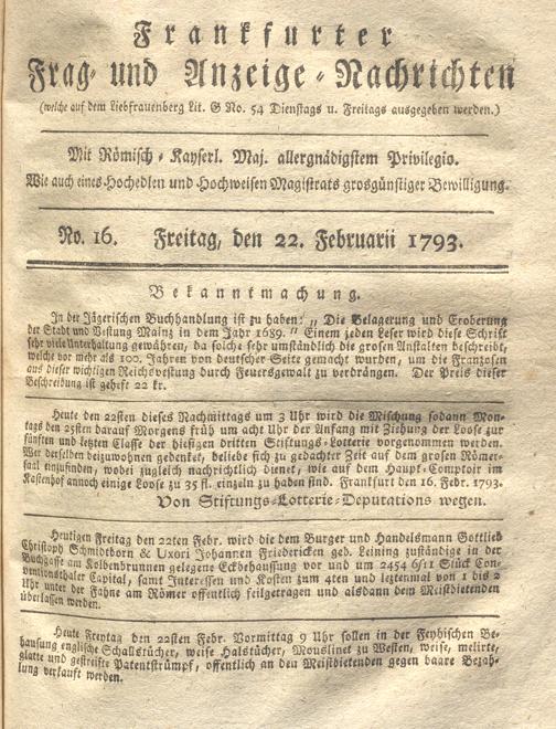 Franckfurter Frag- und Anzeige-Nachricht...
