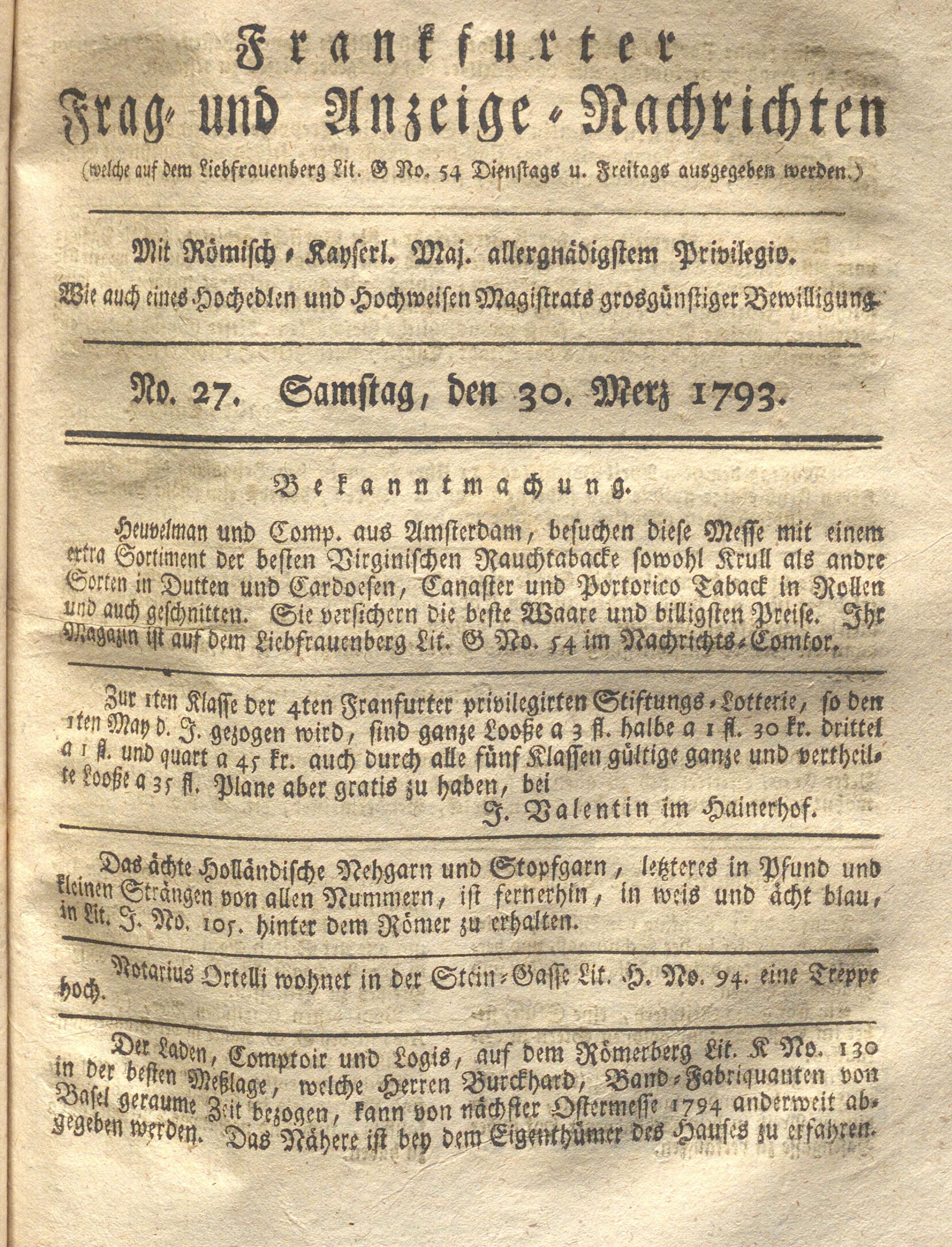 Franckfurter Frag- und Anzeige-Nachricht...