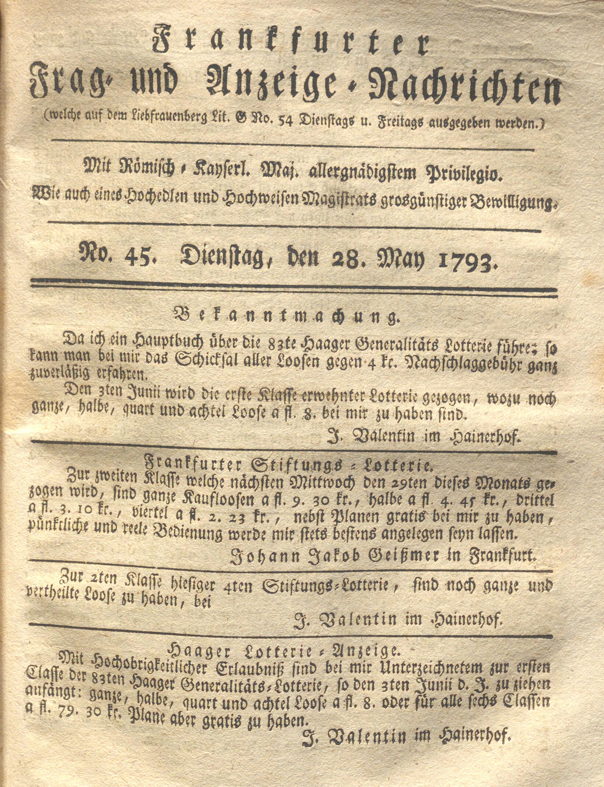 Franckfurter Frag- und Anzeige-Nachricht...