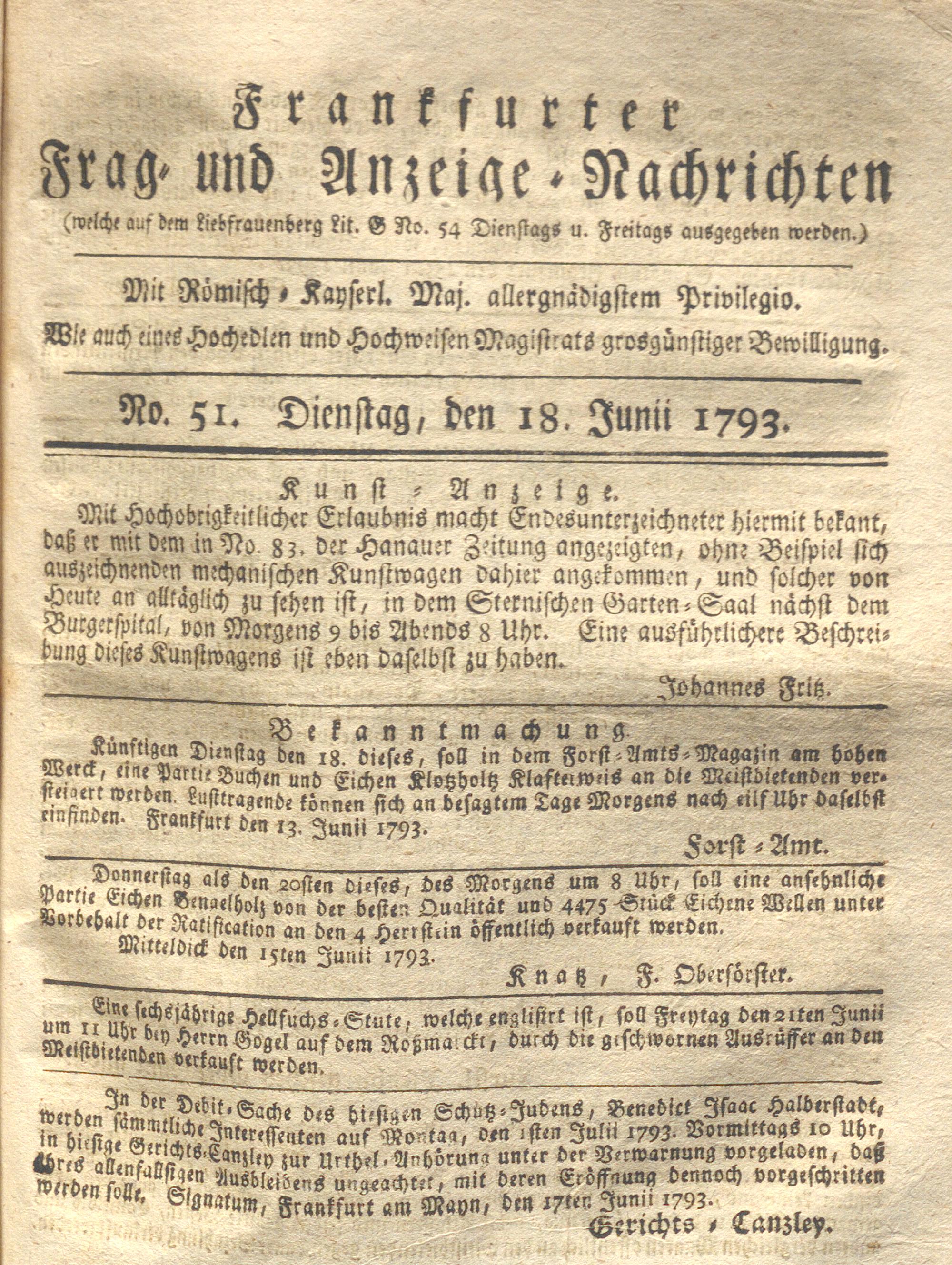 Franckfurter Frag- und Anzeige-Nachricht...