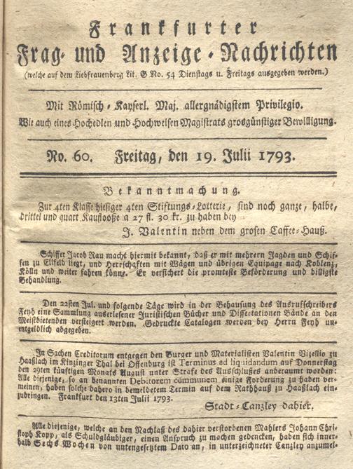 Franckfurter Frag- und Anzeige-Nachricht...