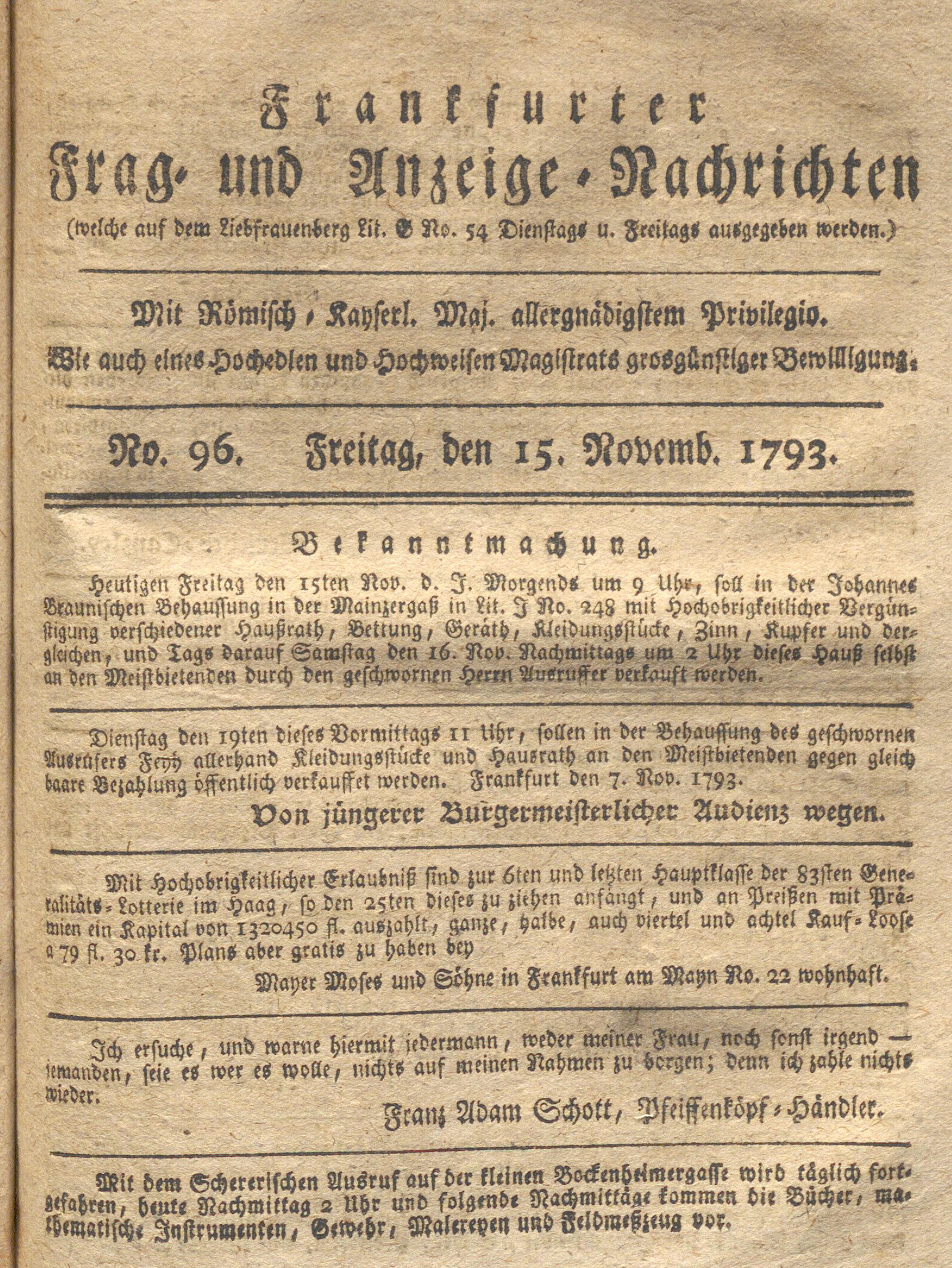Franckfurter Frag- und Anzeige-Nachricht...