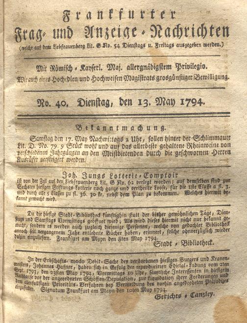 Franckfurter Frag- und Anzeige-Nachricht...