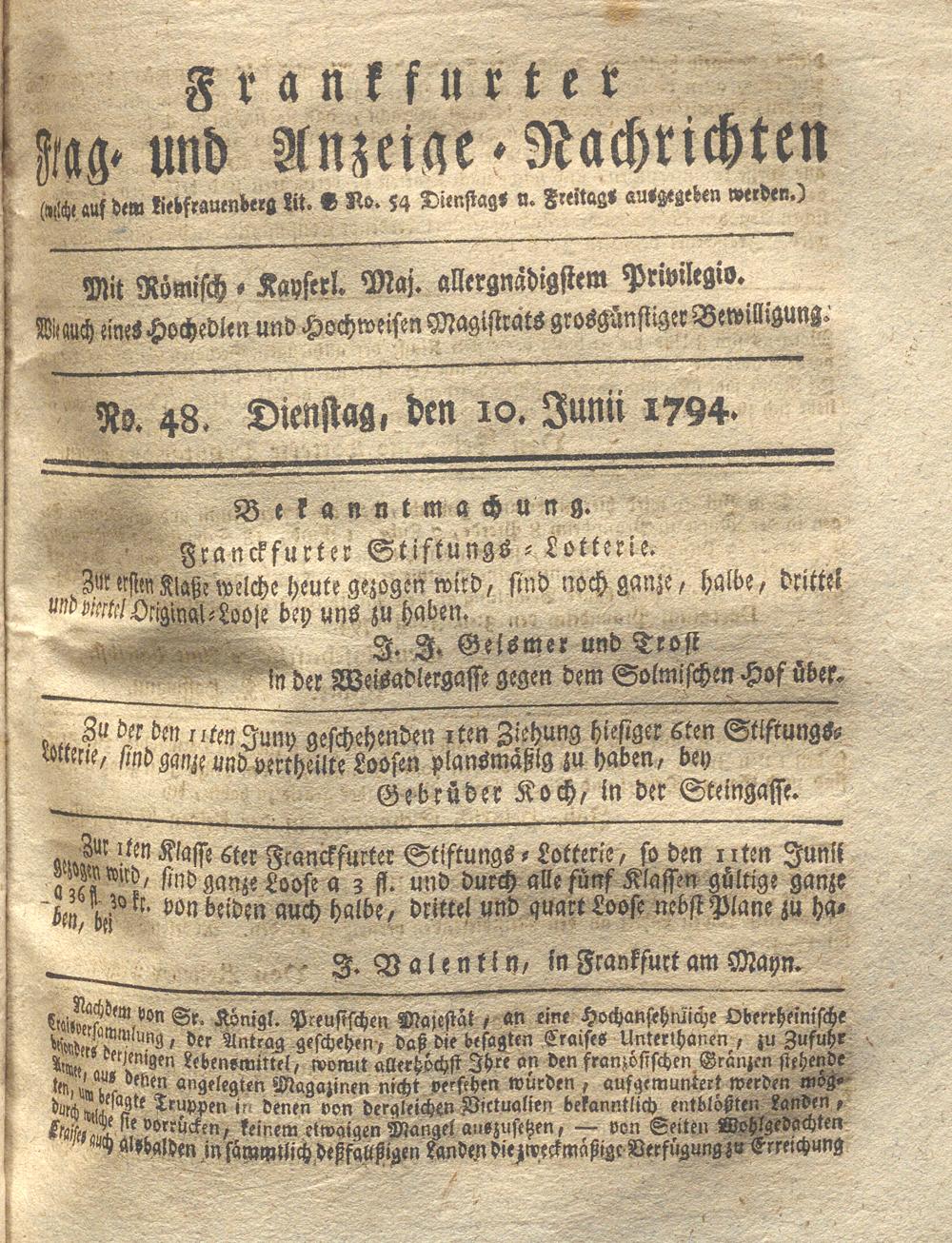 Franckfurter Frag- und Anzeige-Nachricht...