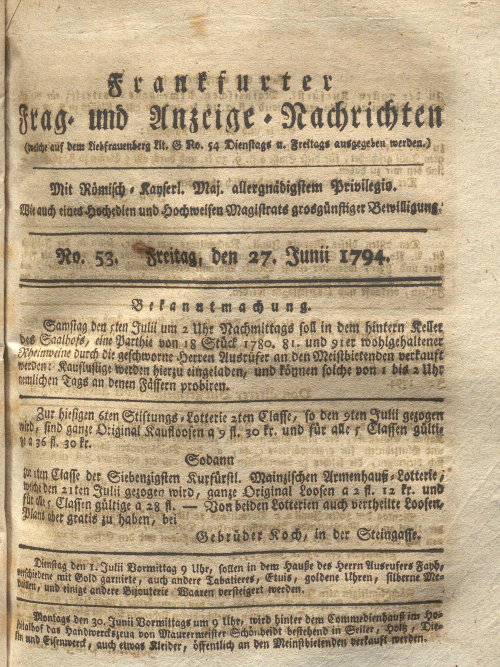 Franckfurter Frag- und Anzeige-Nachricht...