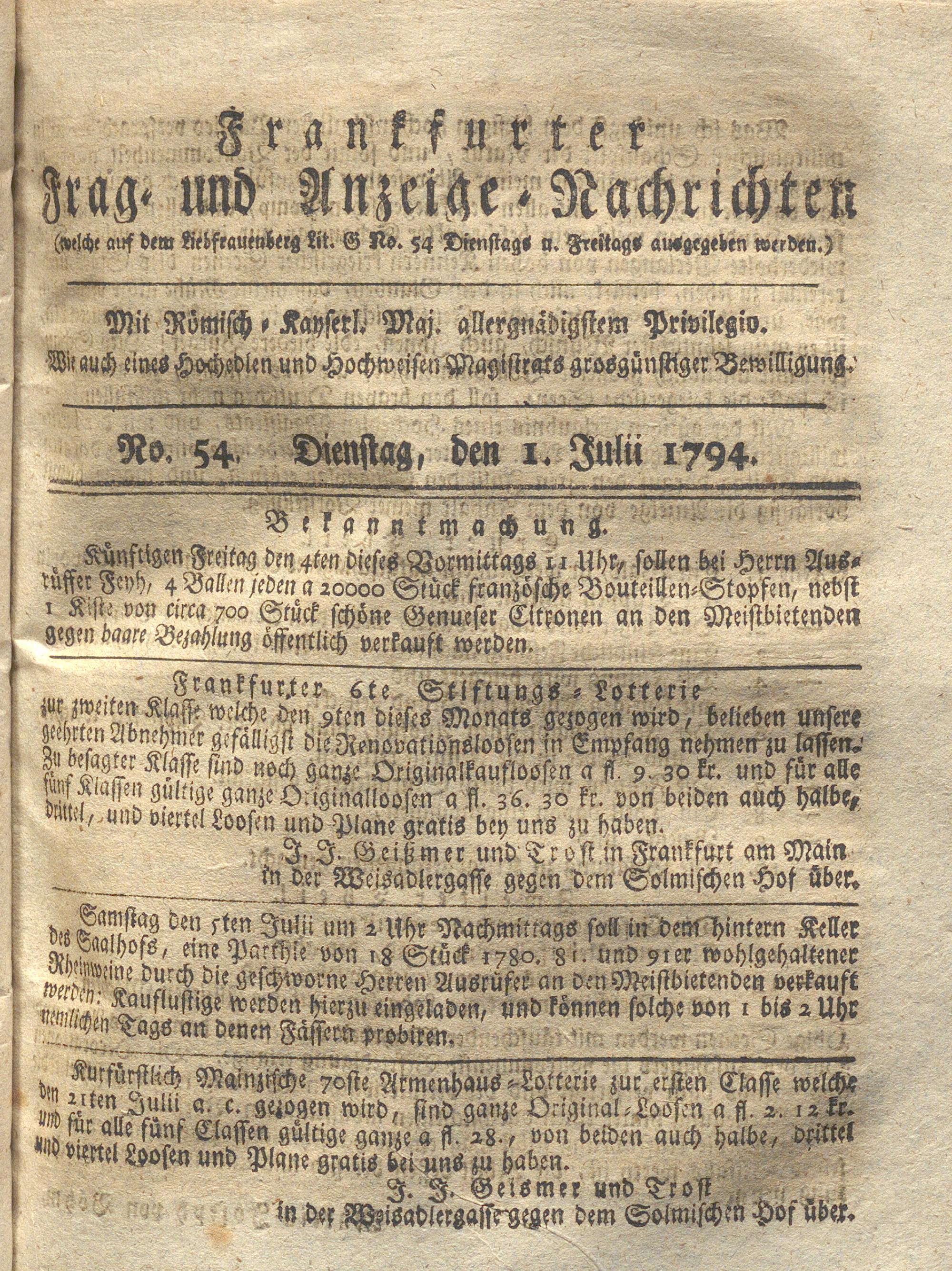 Franckfurter Frag- und Anzeige-Nachricht...