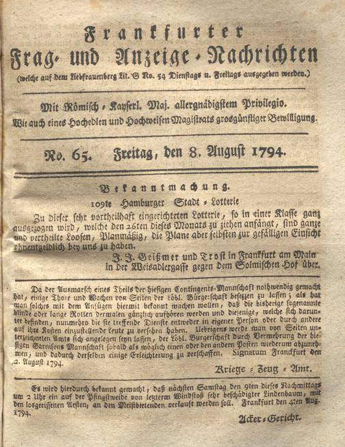 Franckfurter Frag- und Anzeige-Nachricht...