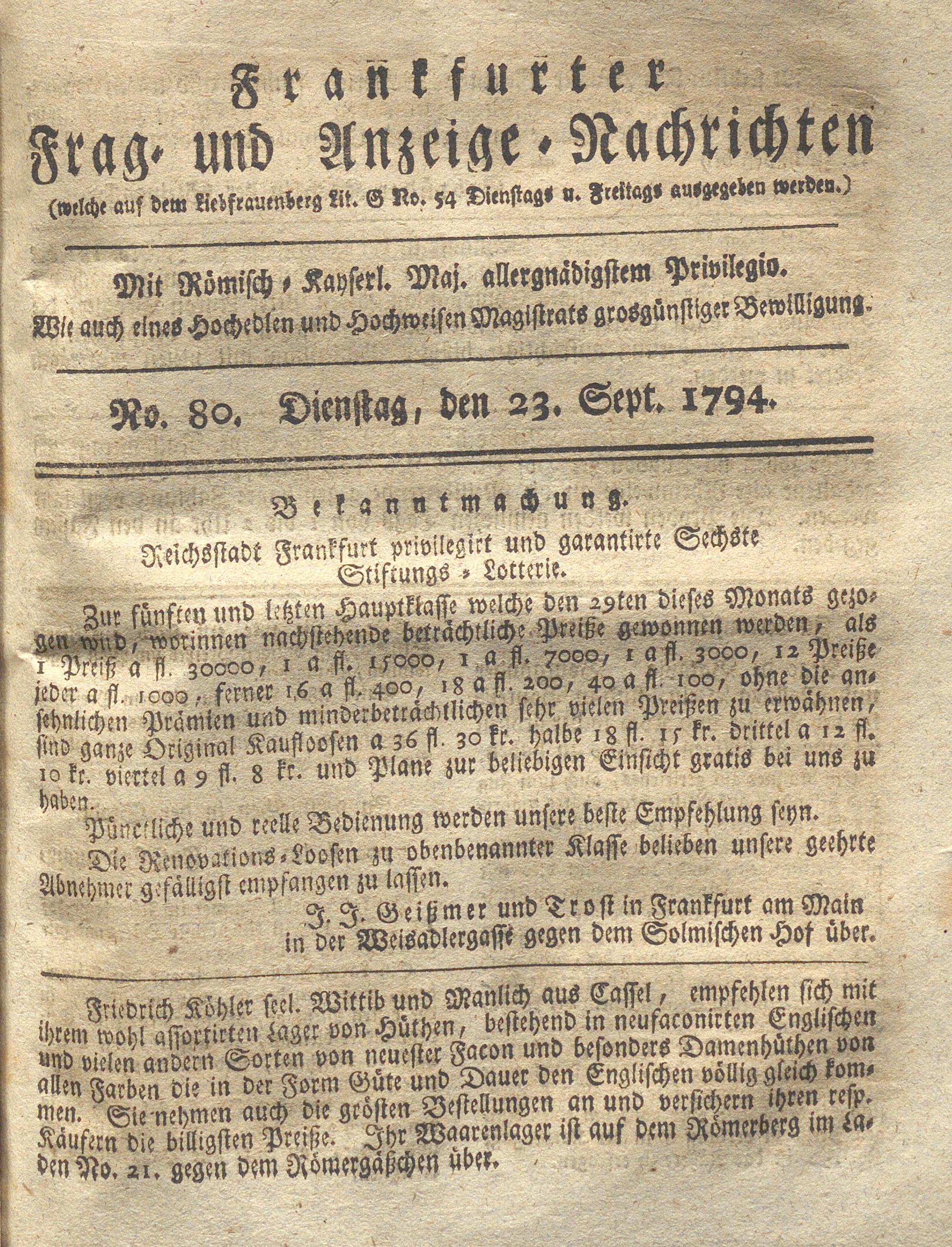Franckfurter Frag- und Anzeige-Nachricht...