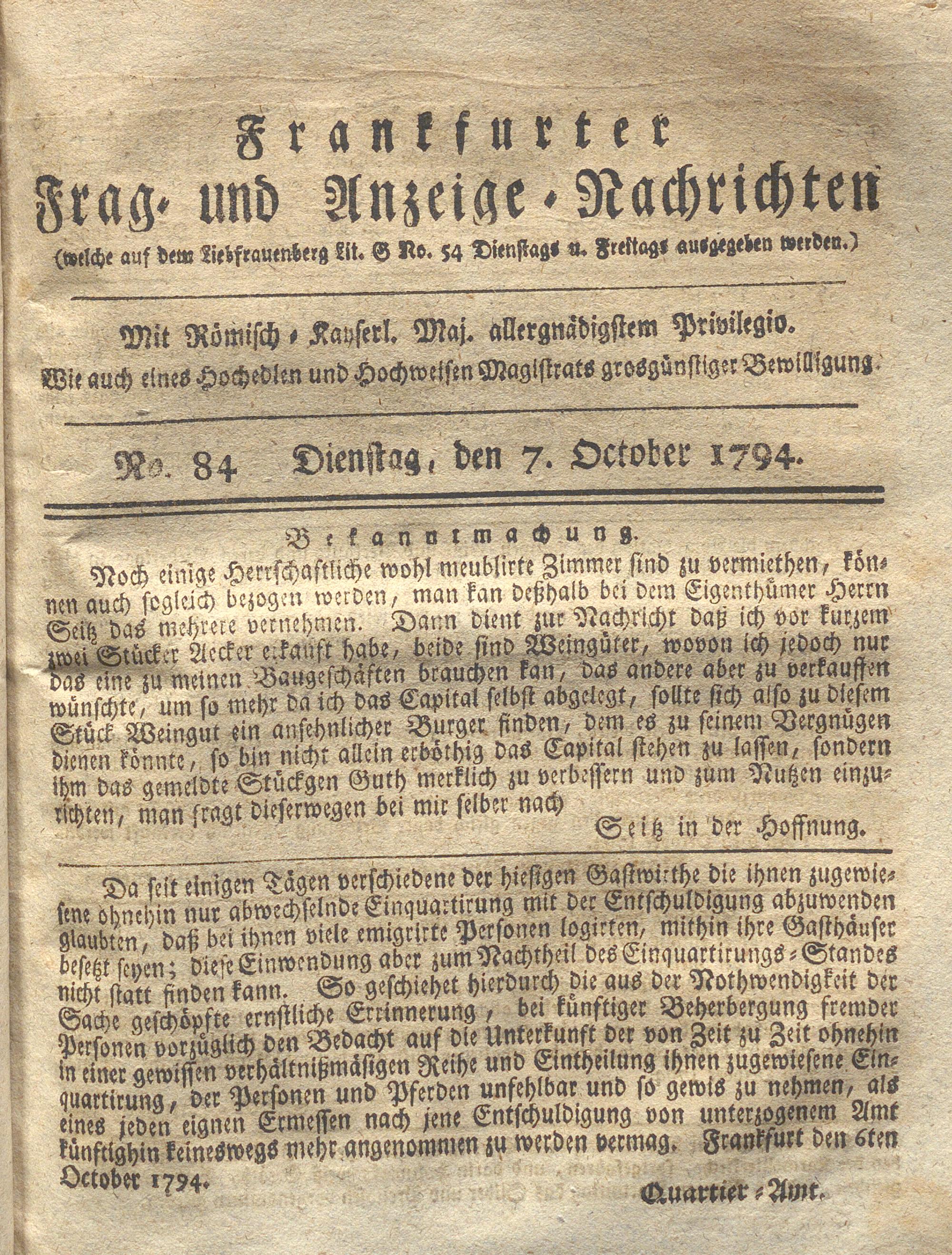 Franckfurter Frag- und Anzeige-Nachricht...