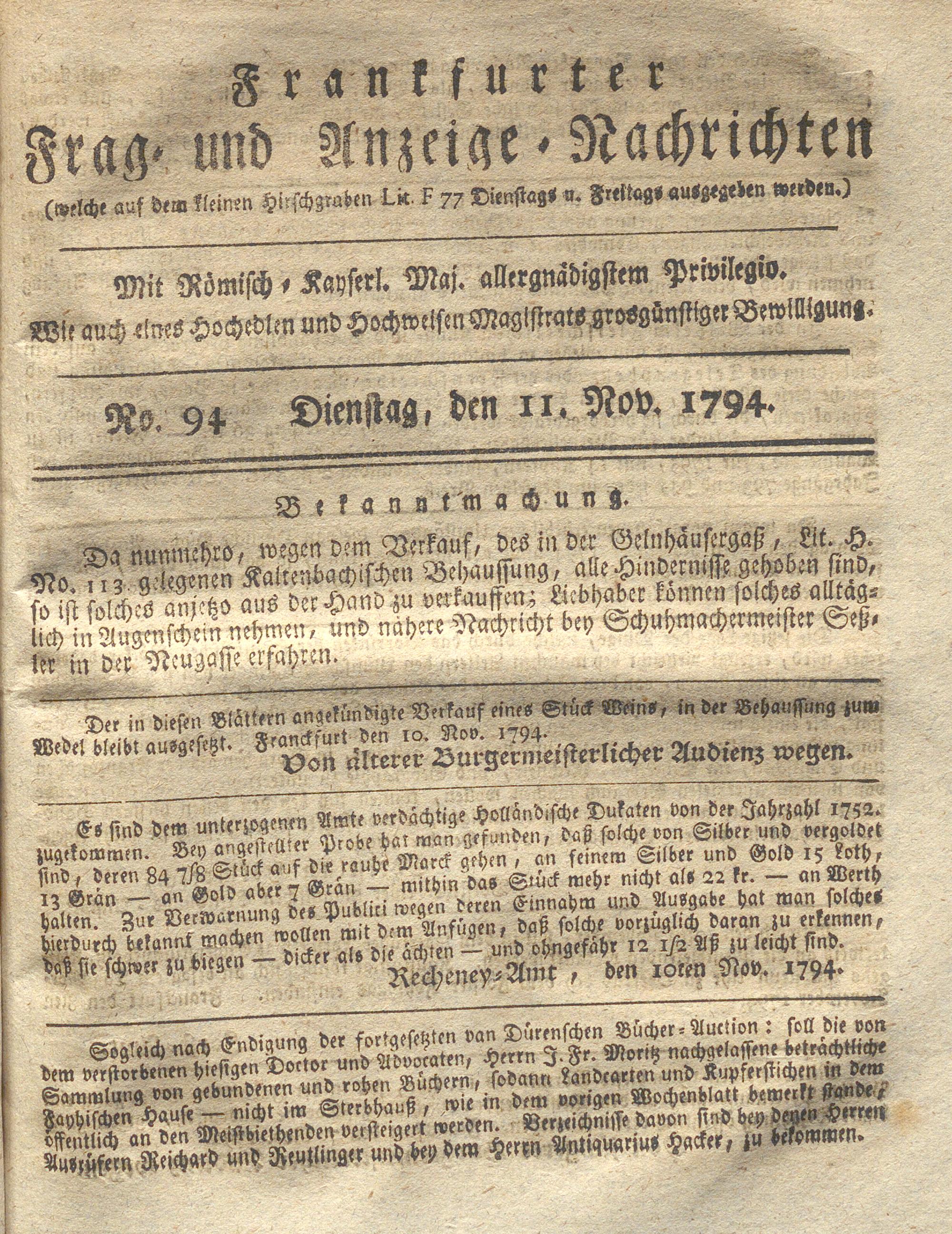 Franckfurter Frag- und Anzeige-Nachricht...
