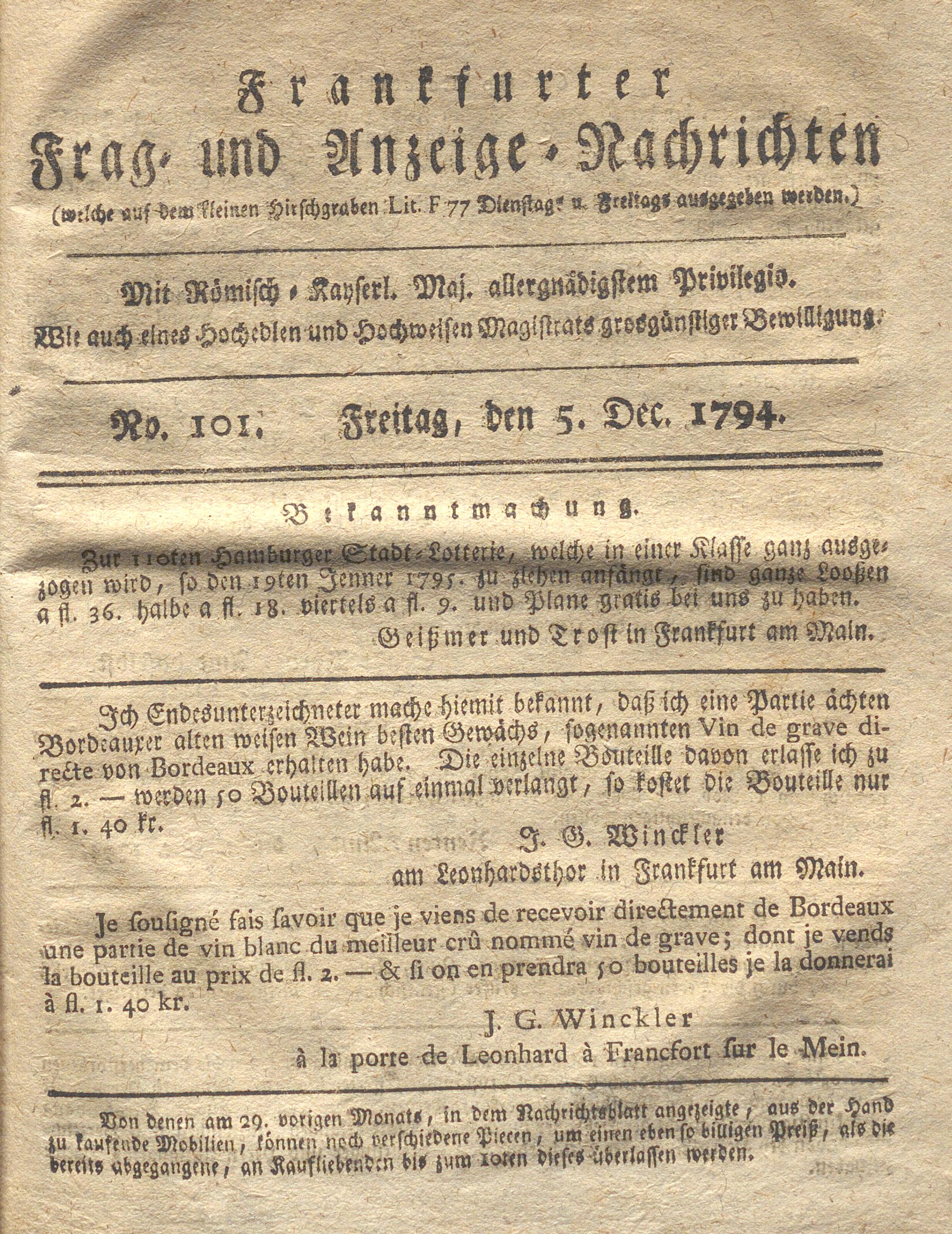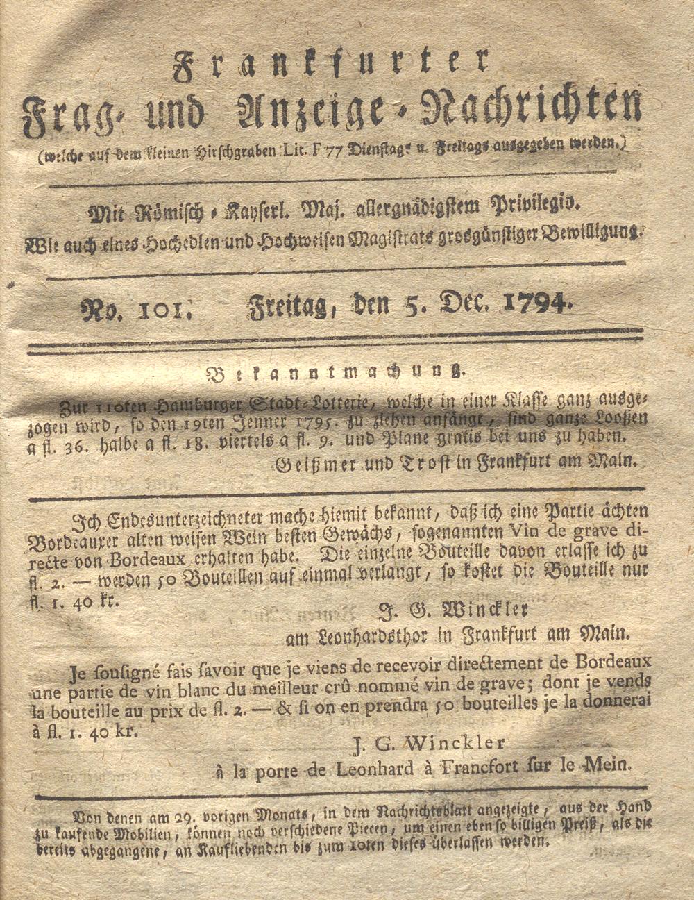 Franckfurter Frag- und Anzeige-Nachricht...