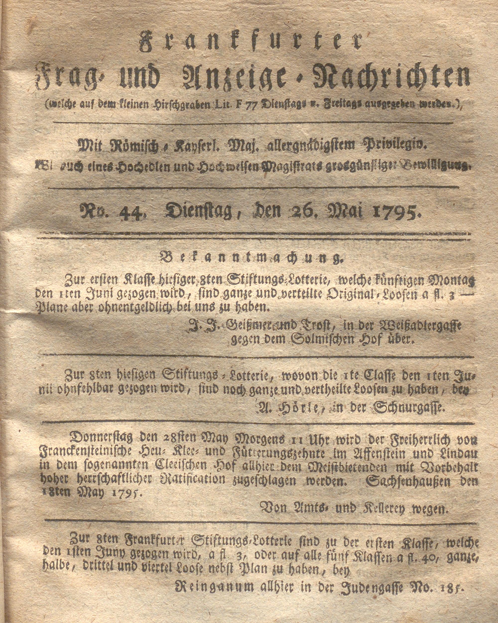 Franckfurter Frag- und Anzeige-Nachricht...