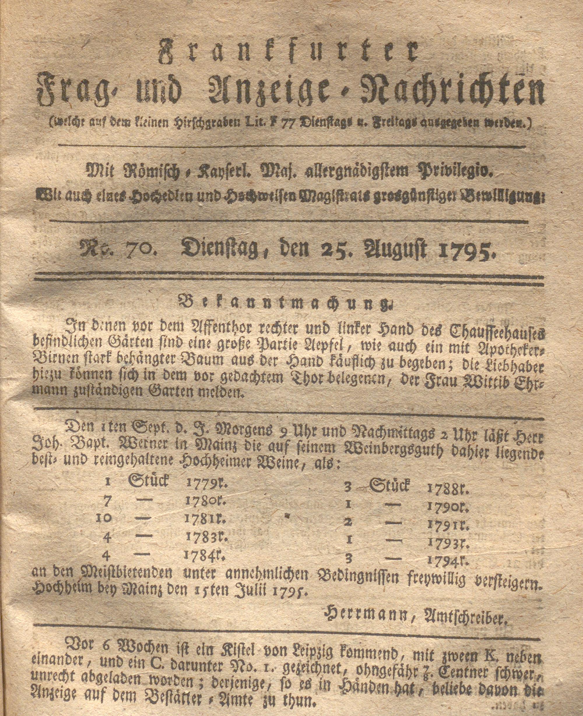 Franckfurter Frag- und Anzeige-Nachricht...