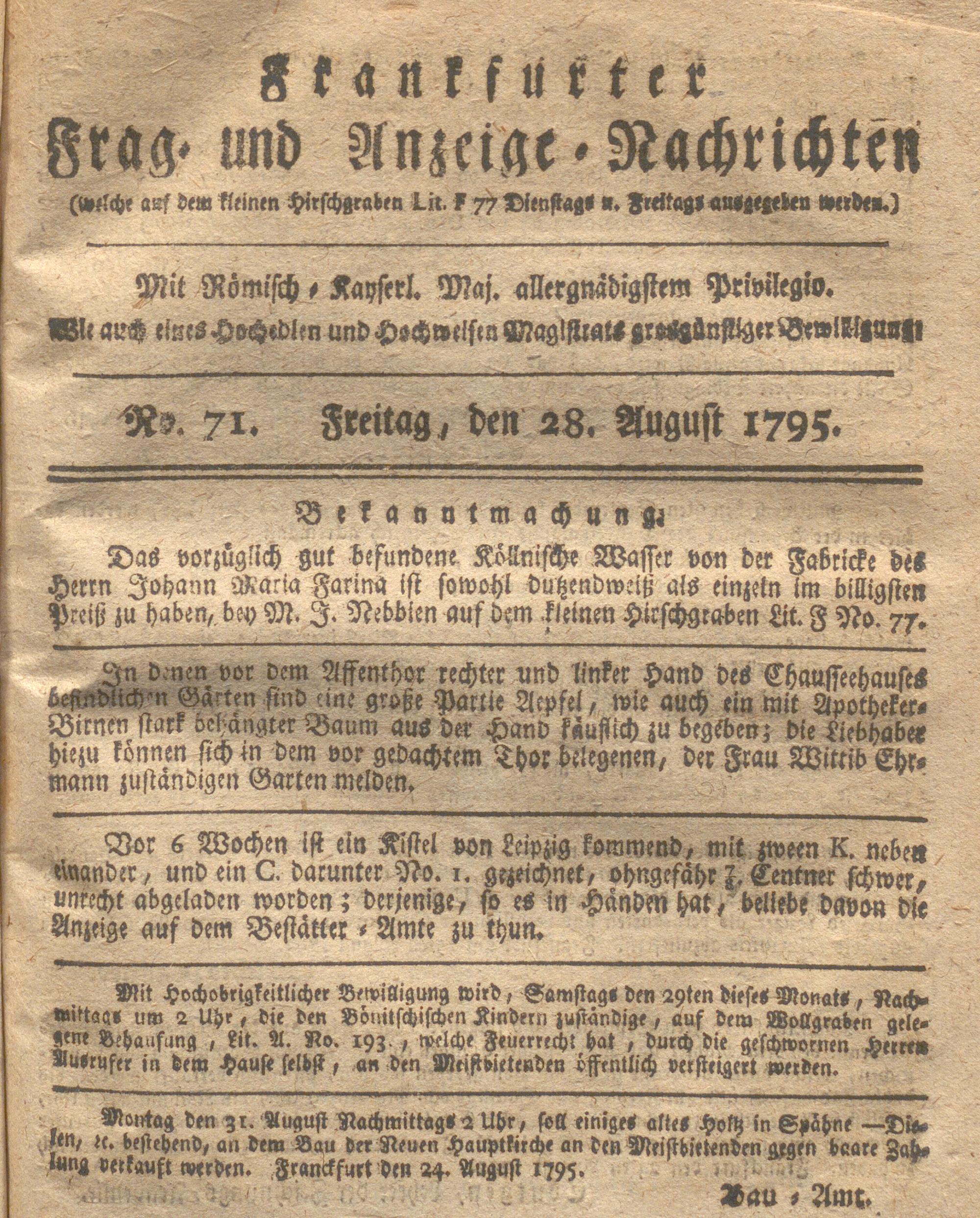Franckfurter Frag- und Anzeige-Nachricht...