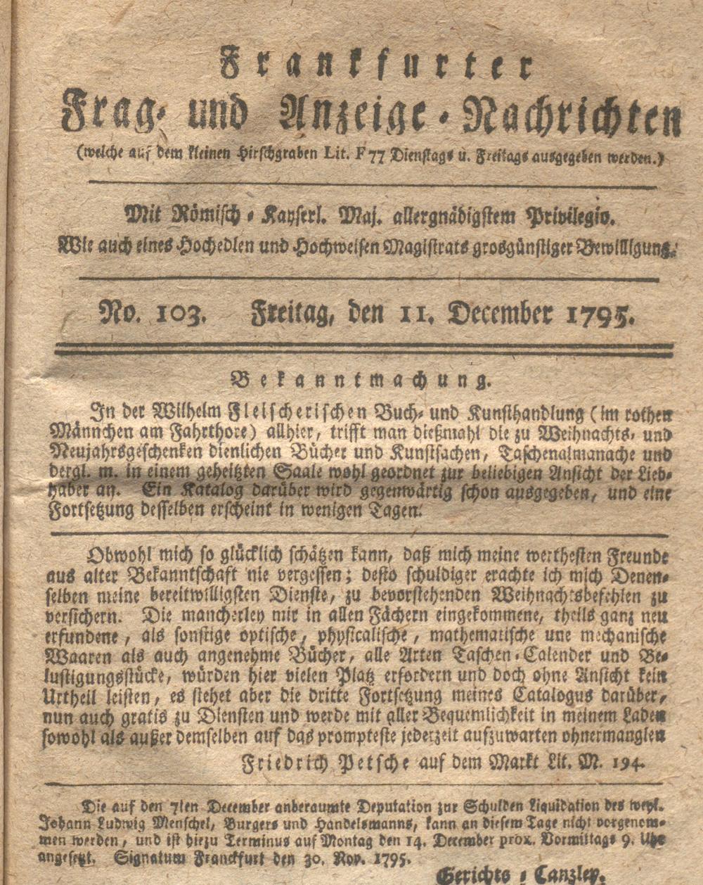 Franckfurter Frag- und Anzeige-Nachricht...