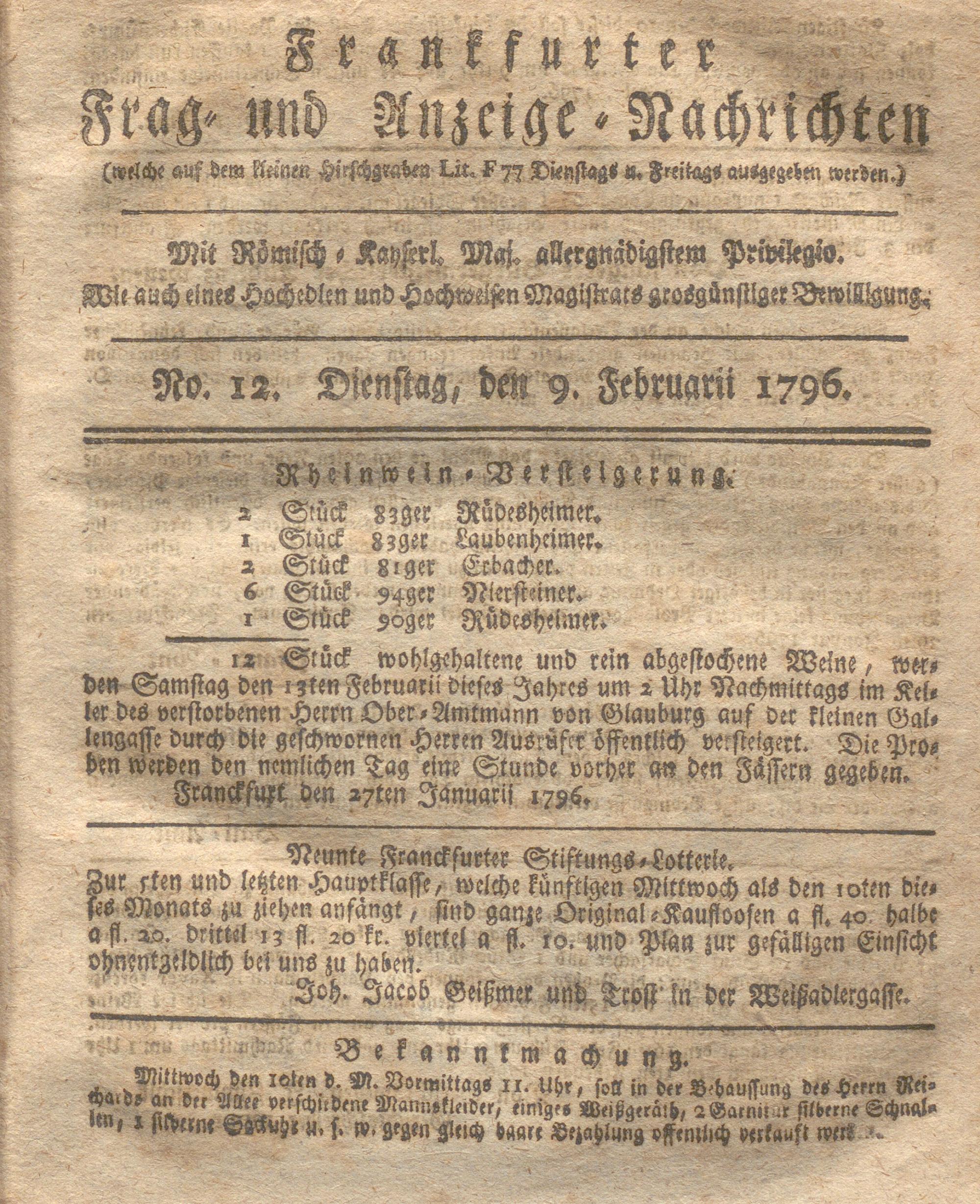 Franckfurter Frag- und Anzeige-Nachricht...